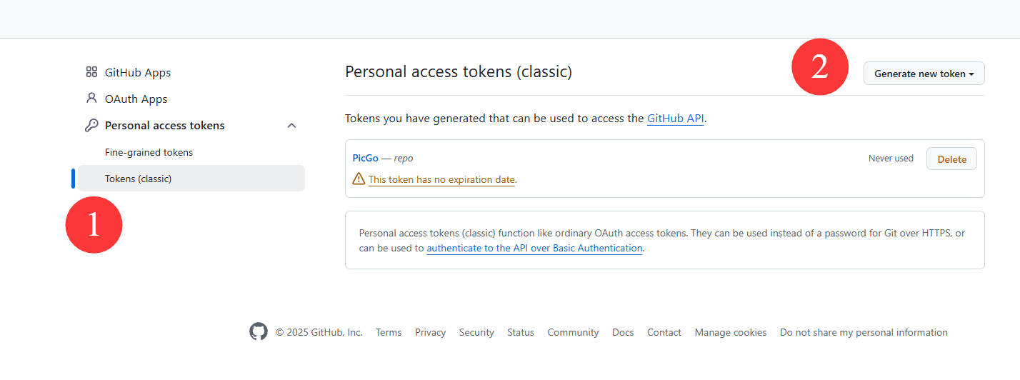 • 通过GitHub 令牌能够用于执行与你的 GitHub 账户相关的各种操作,因此请谨慎选择令牌的权限。