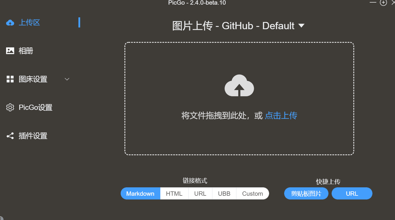 1. 点击 PicGo 窗口中的 “上传” 按钮,选择本地图片文件上传。