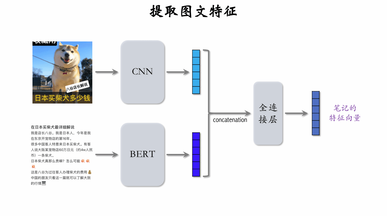 • 一篇新笔记发布之后,用神经网络把它映射到一个特征向量。