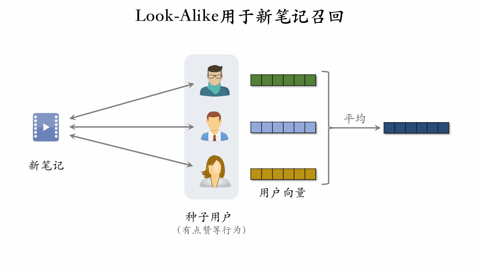 • 把 k 个高曝光笔记的 embedding 向量取平均,作为新笔记的 embedding。
