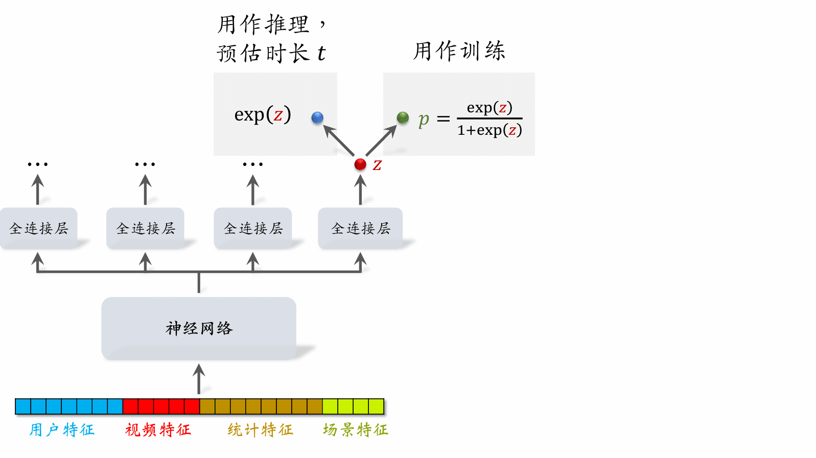 • 做推理:把 exp(z)\exp(z) 作为播放时长的预估。
