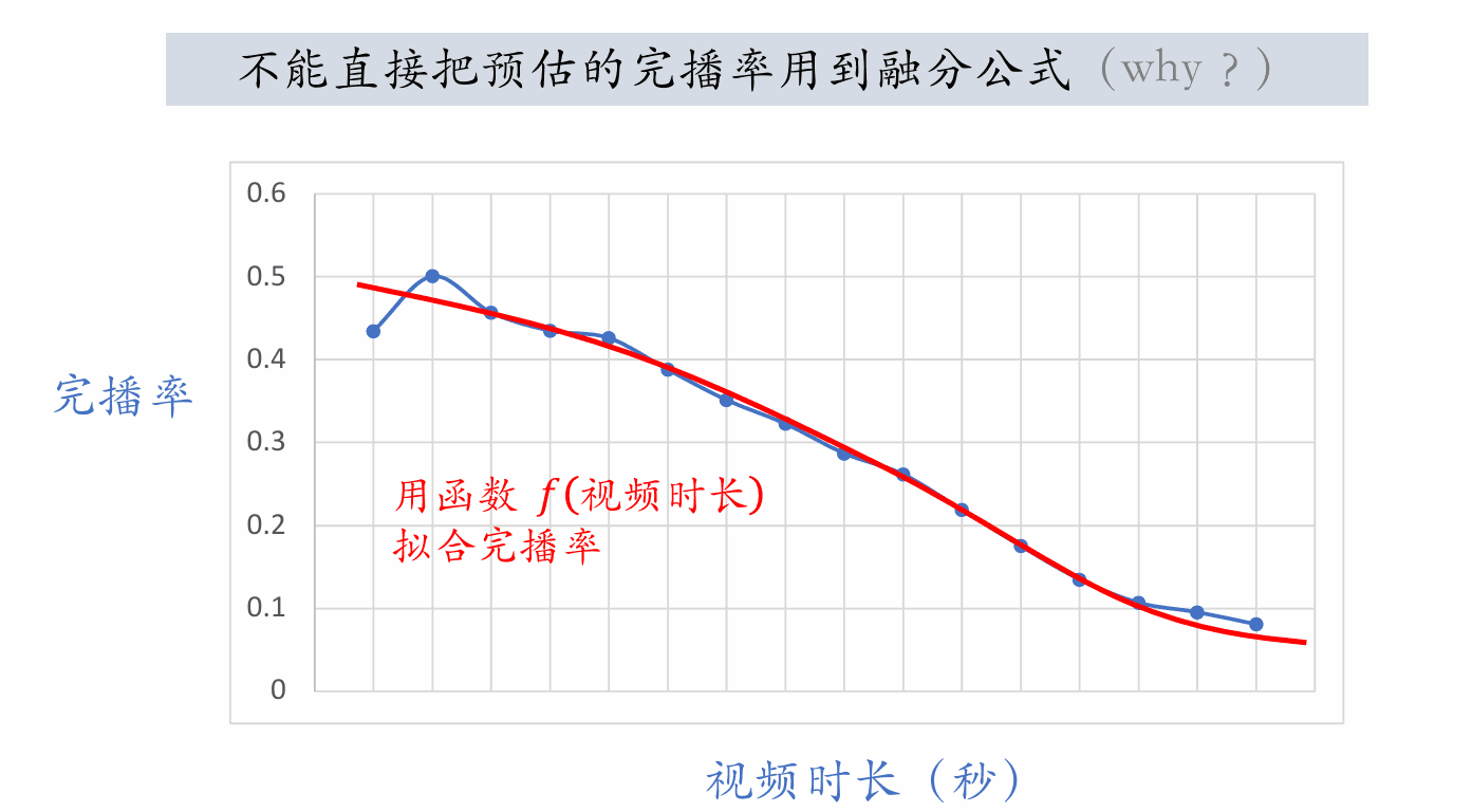 pfinish=预估完播率f(视频长度)p_{\text{finish}} = \frac{\text{预估完播率}}{f(\text{视频长度})}